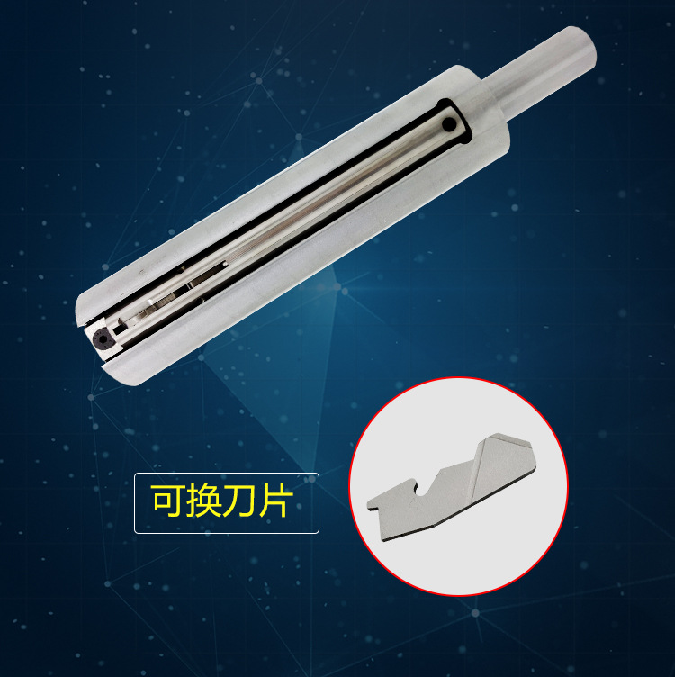 构造简介:倒角刀由刀杆体,刀片(单刀片和双刀片)和弹性封闭槽构成;前部为导孔体,叶子前端为45度,内端为33度,裂口为6度角。
