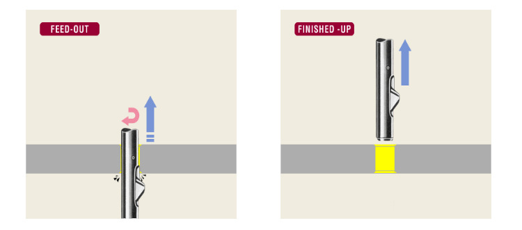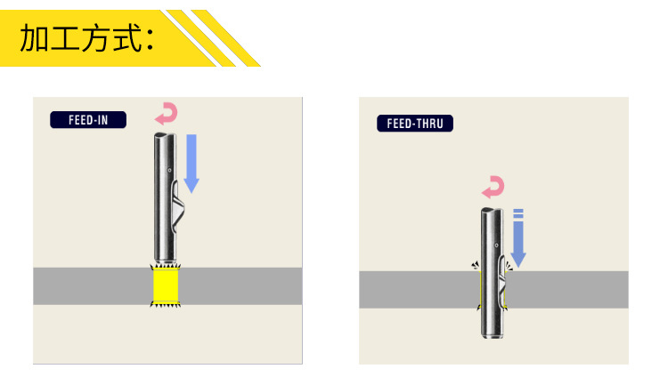 Step3:刀片的所有切割部分都通过孔之后,Step4:获释工具,并对后边缘开展倒角