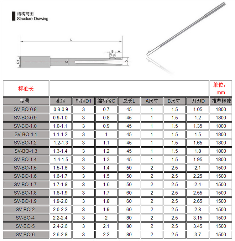 1产品分类(例如(2.8-3.18))代表了孔加工的范围,可以加工此范围内的所有孔。