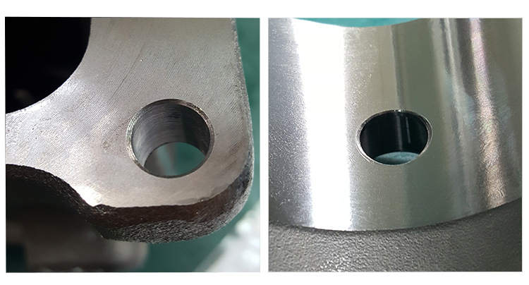 步骤1:将刀穿过前边缘倒角。第二步:倒角后,弹性穿过孔,去除孔壁上的毛刺
