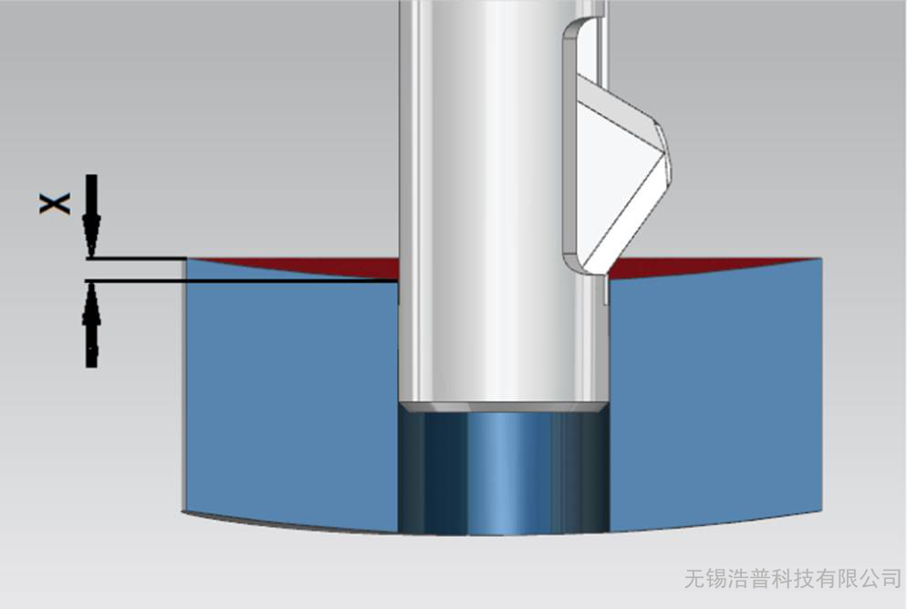 留意:当孔口弯曲时,请在编程时考虑不平度值x(快要x当作工件材质的一部分)